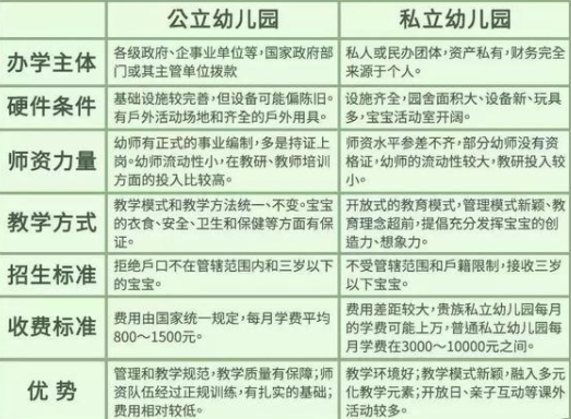 大家都知道,公立幼兒園名額少、難進(jìn),而私立幼兒園又實(shí)在貴的可怕。該如何考量?科大大總結(jié)了一張圖,寶爸媽們可以對比優(yōu)缺點(diǎn),根據(jù)家庭條件進(jìn)行初步篩選。