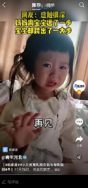 看到最后很多網(wǎng)友表示被感動(dòng)落淚了。有網(wǎng)友感嘆:感觸很深,媽媽離寶寶遠(yuǎn)了一步,寶寶卻跨出了一大步。