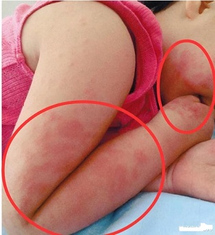 若這樣的衣服,被家長買到后,又不清洗,直接穿在孩子身上。讓甲醛、增白劑、染料等與孩子的皮膚直接接觸,輕者會刺激孩子的皮膚,造成皮炎、過敏、瘙癢、濕疹等。