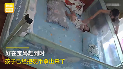 事后,媽媽再來(lái)看監(jiān)控,才發(fā)現(xiàn)了這驚魂的一幕,想一想寶寶剛剛經(jīng)歷的這一切,不由得后脊發(fā)涼。如果當(dāng)時(shí)寶寶沒(méi)有自己把硬幣拿出來(lái),或者媽媽沒(méi)有及時(shí)趕到的話,后果簡(jiǎn)直不堪設(shè)想。