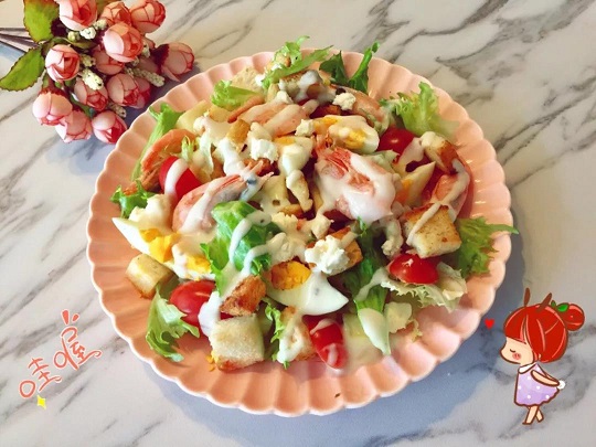 沙拉也是小朋友很喜歡的一種吃法,春節(jié)都會準(zhǔn)備一些北極蝦在冰箱里,正好可以給孩子做一道解膩開胃的爽口沙拉,只要把喜歡的蔬菜和北極蝦處理成合適的大小,擠少許檸檬汁,再倒入喜歡的沙拉汁拌勻就大功告成了,幾分鐘就可以做好哦。