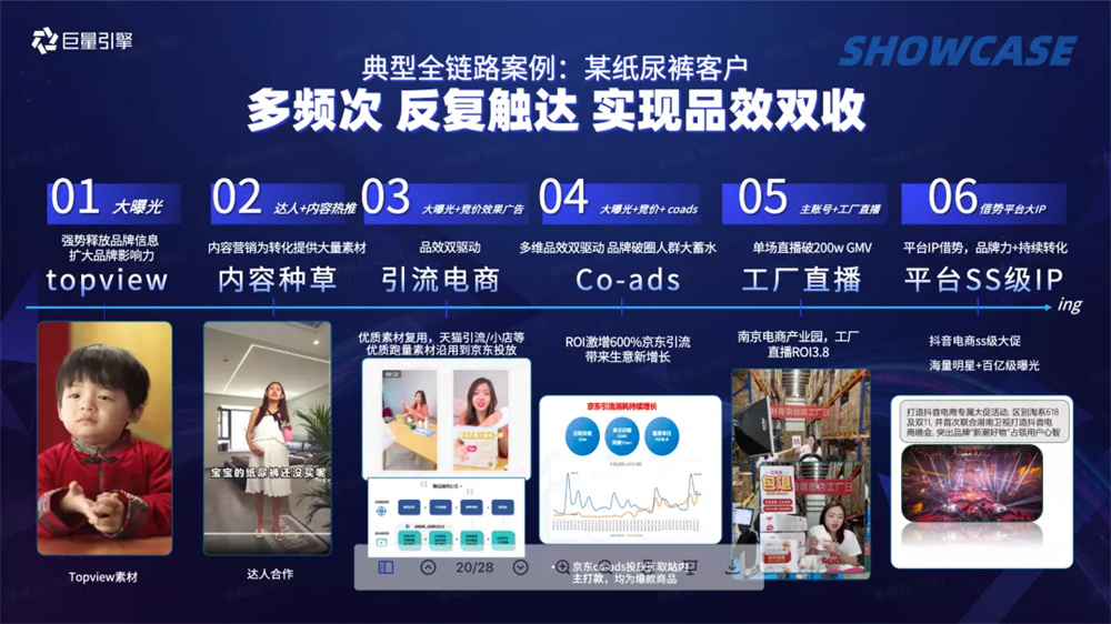 如某母嬰個(gè)護(hù)品牌,則充分挖掘直播通路玩法,前期結(jié)合豐厚福利、特色產(chǎn)品打造,提升品牌熱度。隨后搭建達(dá)人矩陣,聯(lián)合頭部明星和帶貨達(dá)人,打造品牌自播大事件,迅速實(shí)現(xiàn)整體GMV突破兩百萬(wàn),ROI提升72%。