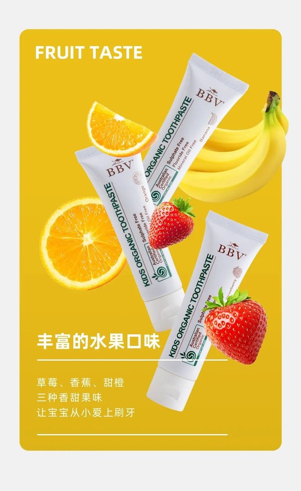 BBV/倍碧唯將牙膏口味設(shè)計成寶寶易接受的水果口味