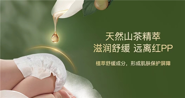 新生代年輕父母在育兒方面都是“成分黨”,對(duì)紙尿褲當(dāng)然也不例外。Babycare山茶輕柔紙尿褲以山茶花為靈感,在產(chǎn)品中添加了原產(chǎn)于法國(guó)的天然山茶油精粹。山茶精萃富含維生素E和鈣、鐵、鋅等微量元素,可以強(qiáng)化肌膚屏障,減緩水分蒸發(fā),降低外界刺激,一直是寶寶撫觸油和高端護(hù)膚品的重要原料。Babycare將山茶精粹引入到紙尿褲中,可以起到滋潤(rùn)舒緩、呵護(hù)嬌嫩肌膚的作用,幫寶寶遠(yuǎn)離紅屁屁。