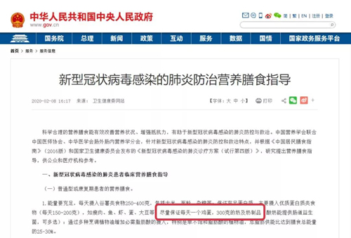 疫情期間,中華人民共和國中央人民政府網(wǎng)站、國家衛(wèi)健委官網(wǎng)均發(fā)布了《新型冠狀病毒感染的肺炎防治營養(yǎng)膳食指導(dǎo)》(以下簡稱“膳食指導(dǎo)”),對新冠肺炎感染者、一線醫(yī)務(wù)人員和一般人群均提供了相應(yīng)的營養(yǎng)支持方案,其中主要提到了常規(guī)的蔬菜、水果、肉類、水產(chǎn)、大豆等之外,重點提出了“盡量保證每天一個雞蛋、300克奶及奶制品”。同時,牛奶被國家發(fā)改委列為疫情防控重點保障物資。