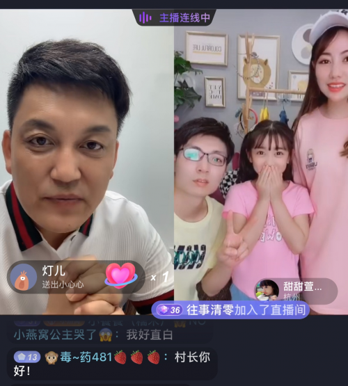 5月10日晚上的直播,村長李銳顯然是最大的孩子王,在甜甜萱的直播間內(nèi),村長接到的任務(wù)是要幫甜甜萱媽媽評(píng)出最潮搭配獎(jiǎng),李銳用湖南衛(wèi)視《我是歌手》總導(dǎo)演洪濤的口吻緩緩喊出“我認(rèn)為,今天最潮搭配,是甜甜宣的爸爸……的寶貝”。接著,李銳又去到了小山竹的直播間,小山竹的第一句話就是“村長,我好想你呀!”李銳與小山竹和爸爸聊了很多《爸爸去哪兒》中的趣事,并邀請(qǐng)小山竹跟著村長去旅行,與其他孩子們?cè)俅蜗嗑邸?/p>