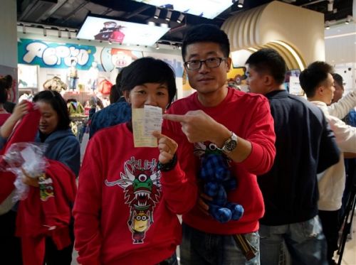 (小豬班納董事長與第一位到店顧客體驗塞車游戲贏取獎品)