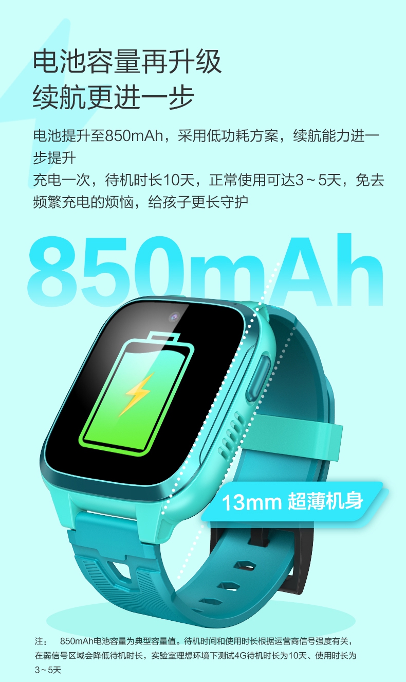 外觀足夠出色,配置也毫不遜色。360兒童手表8XS還具備850mAh的超大電池容量,采用低功耗方案,使續(xù)航能力進一步提升。充電一次,待機最長可達10天;正常使用可達到3至5天;免去頻繁充電煩惱,給孩子更長守護,讓孩子在外肆意玩耍,家長無需因電量消耗過快而擔憂。實際上,這樣出色的續(xù)航能力,就是長假外出使用,估計也是綽綽有余的。