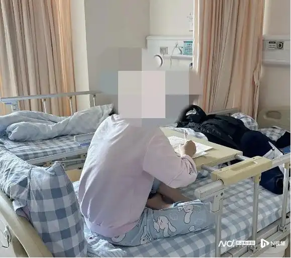 小玲(化名)在病房學(xué)習(xí)。