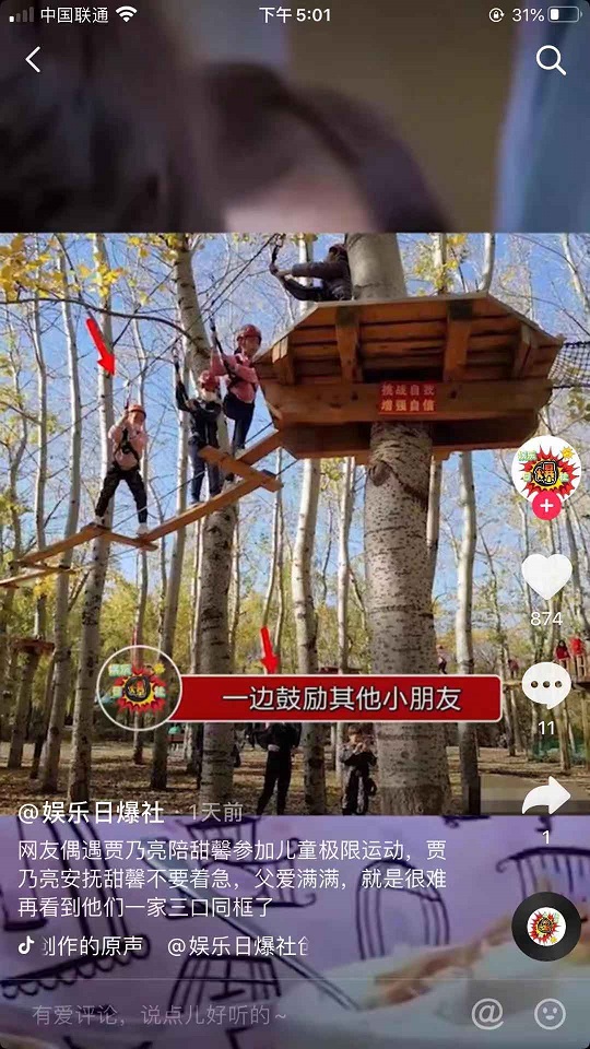 賈乃亮陪甜馨參加極限運動,鼓勵女兒要勇敢