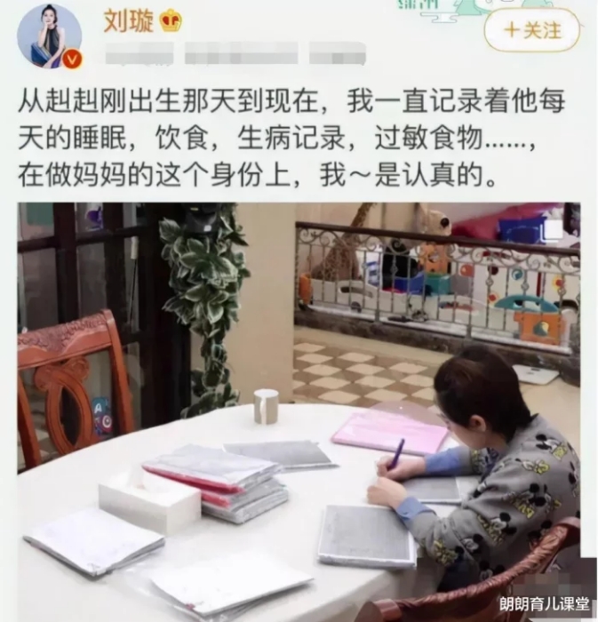比如,劉璇從來不讓孩子吃鹽,她認為這樣對孩子身體好。她在微博上說了一段話,大意是:孩子的起居一切我都記錄著,我不是心血來潮,而是認真的。