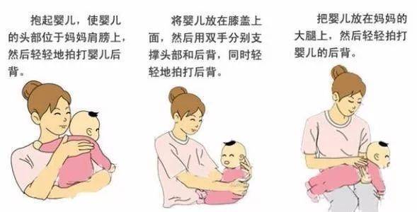 喂奶后要排嗝,首先要將寶寶豎抱,手掌微微向里彎曲,形成空心輕拍寶寶后背,每次拍5分鐘以上,或者拍到寶寶打嗝為止。