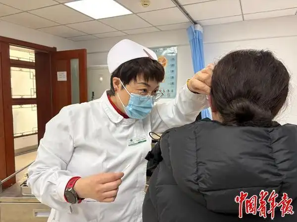 北京中醫(yī)醫(yī)院,護士正給一個00后年輕人埋耳豆。中青報·中青網記者 劉昶榮/攝