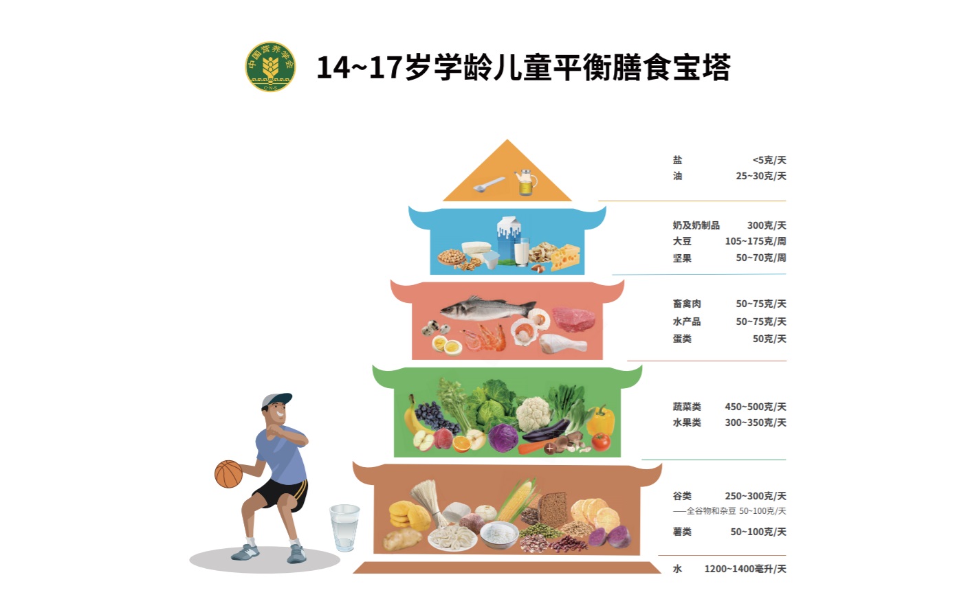 14-17 歲學(xué)齡兒童兒童平衡膳食寶塔