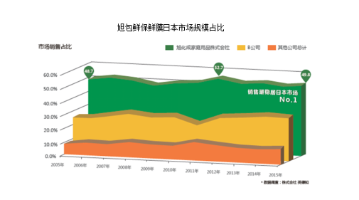說(shuō)起PVDC材質(zhì)的保鮮膜就不得不提起日本保鮮膜市場(chǎng)銷售第一的品牌:旭包鮮保鮮膜(サランラップ)。*數(shù)據(jù)調(diào)查:株式會(huì)社 英德知