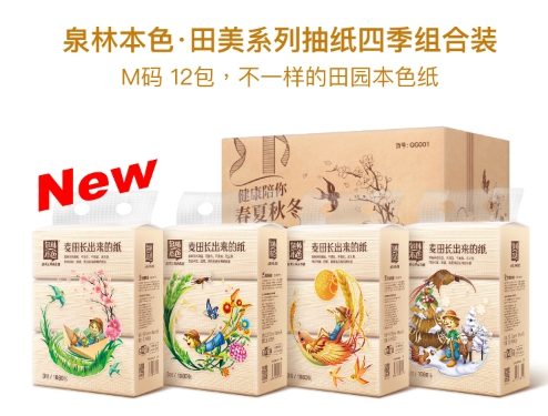 4月18日,在京東APP首頁品牌秒殺板塊,一款手繪卡通外包裝的本色衛(wèi)生抽紙格外引人注目。據(jù)悉,這款別開生面的衛(wèi)生紙是泉林本色京東自營店首發(fā)的“四季系列”新品。該系列產(chǎn)品主打環(huán)保、實(shí)用和趣味性。一經(jīng)上市就受到大批寶媽和居家人士的喜愛。