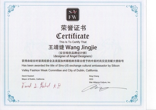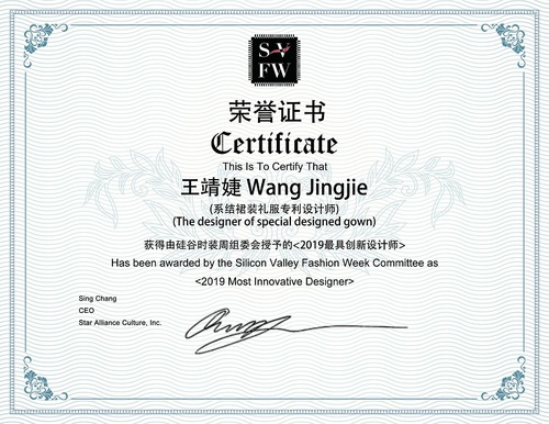 創(chuàng)始人王靖婕(J.King)在硅谷時(shí)裝周上被評(píng)為“2019最具創(chuàng)新設(shè)計(jì)師”,并榮獲“中美時(shí)尚交流貢獻(xiàn)大使稱號(hào)”、“中美時(shí)裝周時(shí)尚大使稱號(hào)”,為中國(guó)設(shè)計(jì)師再添榮耀和美譽(yù)!