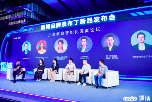 除儒博品牌及新品發(fā)布外,儒博邀請到多方合作伙伴來到發(fā)布會現(xiàn)場,就“兒童教育智能化”展開圓桌討論。清華大學出版社少兒分社社長曹敏、北京師范大學教育學部副教授童莉莉以及工程師爸爸CEO李文華和現(xiàn)代教育集團董事長陳江斌,與儒博聯(lián)席總裁尹方鳴、副總裁陳憶共同探討了兒童教育的現(xiàn)狀以及人工智能時代教育的未來。