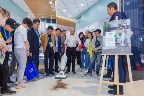 可寶吸拖一體套裝強(qiáng)大的清潔功效吸引了眾多參展觀眾