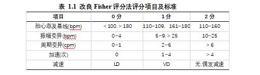 胎心監(jiān)護(hù)檢測(cè)結(jié)果的一致性由改良Fischer評(píng)分法定義,改良Fischer評(píng)分的項(xiàng)目及評(píng)分標(biāo)準(zhǔn)見(jiàn)下表。
