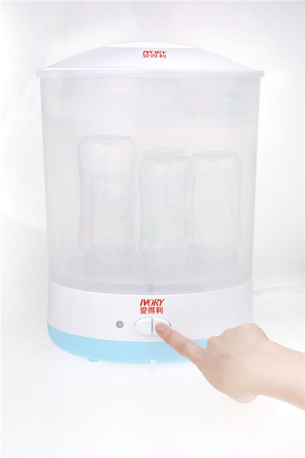 蒸汽消毒:使用蒸汽消毒鍋消毒比水煮消毒更加方便省事。以愛得利蒸汽消毒鍋為例,家長們只需要在清洗干凈奶瓶及各部件后,將它們分別放進蒸汽鍋里,加水蓋好上蓋,開啟電源即可。消毒完成后愛得利蒸汽消毒鍋會自動斷電,不用費心一直盯著,冷卻后用奶瓶夾將奶瓶及配件取出,放置于通風處晾干備用,可以說是超級省心省力!