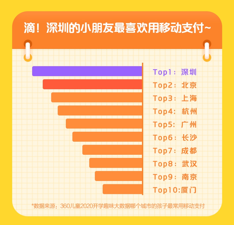 隨著移動(dòng)支付的流行,如今孩子們也不可避免地開始使用。360兒童手表大數(shù)據(jù)顯示,深圳、北京、上海、廣州的小朋友,使用移動(dòng)支付的頻次最高??偠灾?,身處發(fā)達(dá)的一線城市,孩子們自然無(wú)可避免地要使用移動(dòng)支付。所以,如何為孩子選擇合適的設(shè)備進(jìn)行移動(dòng)支付,如何培養(yǎng)孩子正確的理財(cái)觀念,需盡早引起家長(zhǎng)的重視。