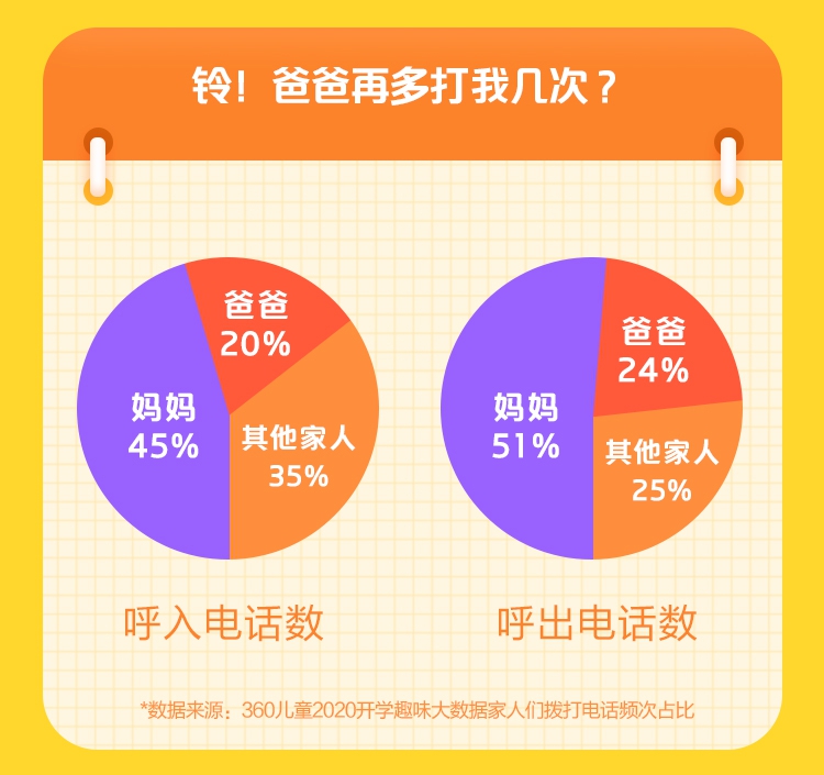 不得不令人深思的是,對(duì)于向往親情、友情的孩子們來(lái)說,爸爸媽媽的呵護(hù)和關(guān)愛無(wú)疑是他們最為渴望的。然而360兒童手表大數(shù)據(jù)卻顯示,無(wú)論是呼入電話數(shù)還是呼出電話數(shù),爸爸都不及媽媽的一半。由此可見,“粗心”的爸爸們對(duì)孩子的關(guān)愛并不夠,還需要多多加油。