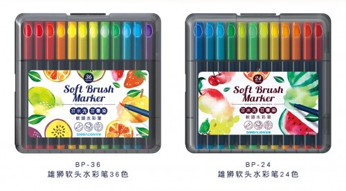 軟頭仿毛筆式筆尖設(shè)計(jì),非常有彈性,不易劃紙、出墨流暢。使用時(shí)可以靈活、生動(dòng)地運(yùn)筆,自由變換線條粗細(xì),勾線、涂色、設(shè)計(jì)、草圖或是藝術(shù)字等都便利!還可加水暈染,表現(xiàn)出色彩濃淡變化,繪制出水彩等多變畫風(fēng)!