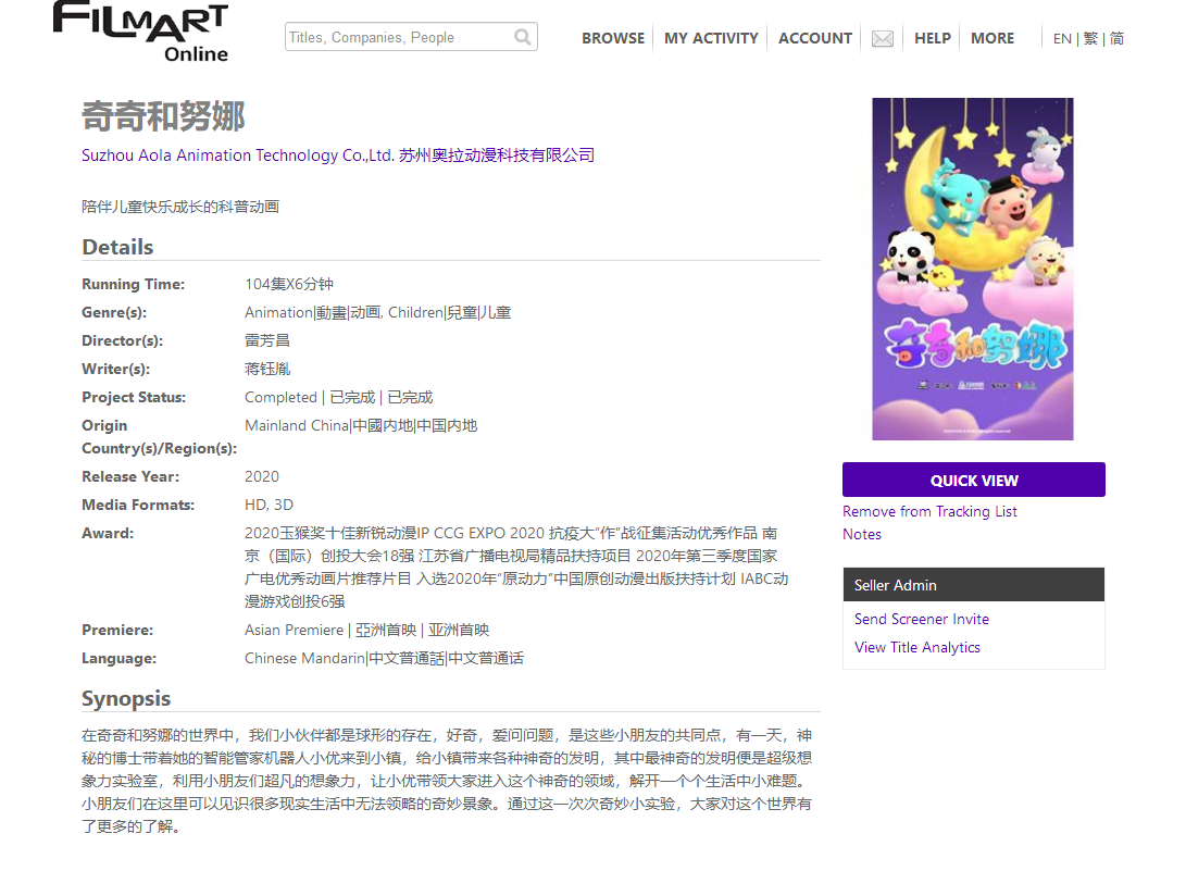 香港國際影視展(Filmart)平臺《奇奇和努娜》展示頁