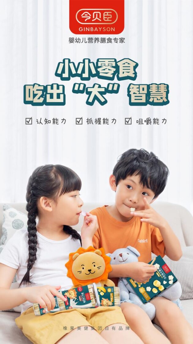 今貝臣(Ginbayson)是橡果美健集團(tuán)旗下全資控股子公司─今貝臣(廣州)生命科學(xué)有限公司,創(chuàng)立的國內(nèi)嬰兒輔食品牌,主營嬰幼兒營養(yǎng)食品與嬰幼兒保健產(chǎn)品兩大板塊。