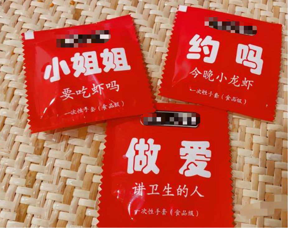 “絕不從涼”?一次性手套包裝惡俗、露骨,一家人點(diǎn)餐超尷尬