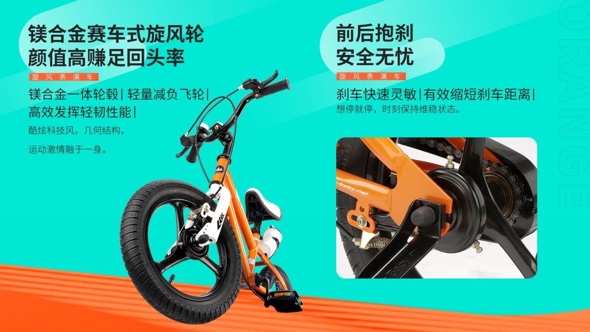 優(yōu)貝童車,讓孩子學自行車起步就有澎湃動力,助力于孩子成長賽道,為孩子提供安全、舒適、輕松的騎行環(huán)境,“橙”為孩子們的新朋友。