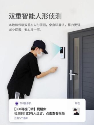 如果門外有異常動靜,或者有陌生人徘徊踩點,360可視門鈴5C會自動錄像并推送到你的手機。值得一提的是,360可視門鈴5C基于雙重智能人形偵測技術(shù),可以過濾掉無效偵測,減少誤報。