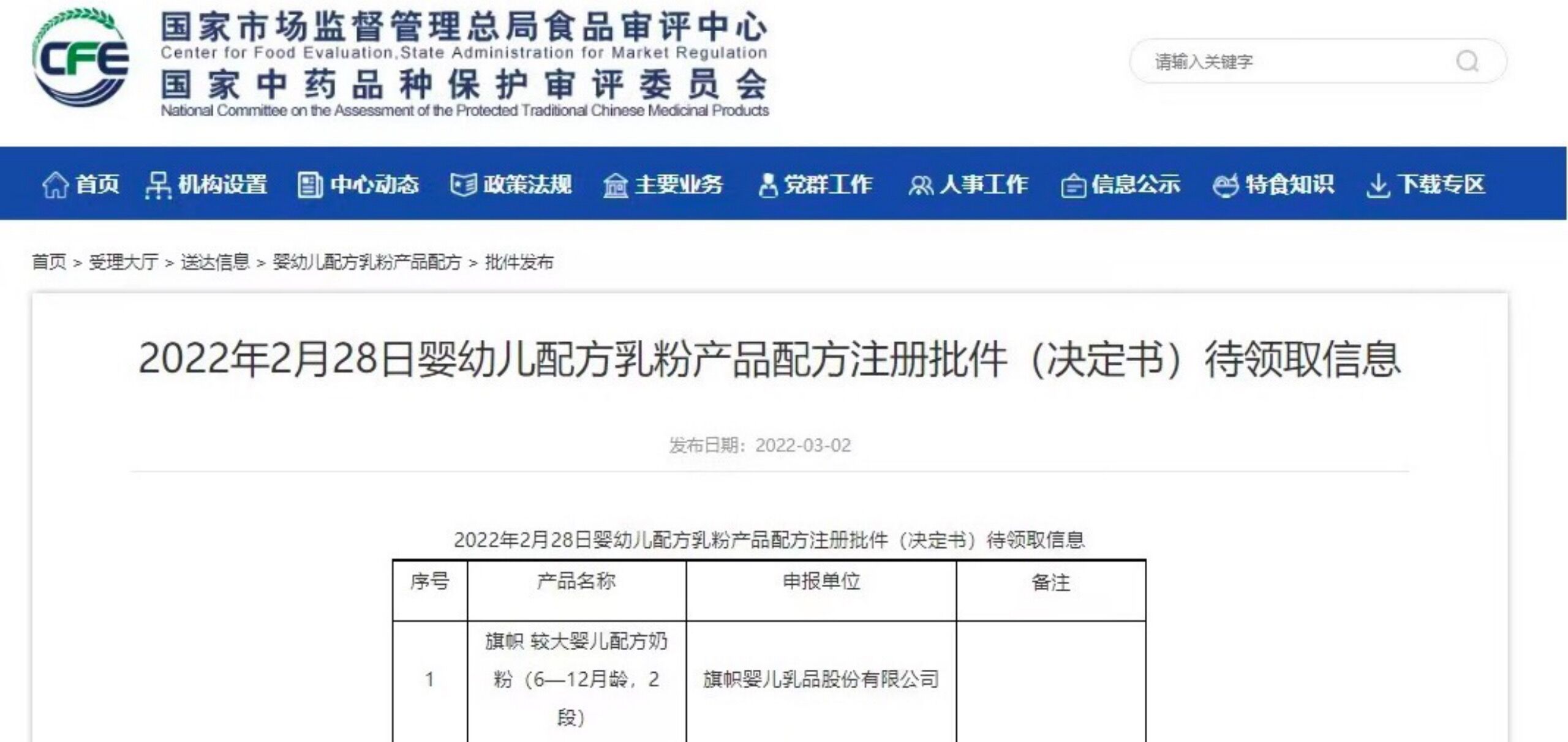 (國家市場監(jiān)督管理總局食品審評中心官網截圖)