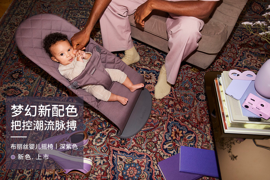 新配色巧妙化用了潘通紫作為流行色,運用在明星產品嬰兒背帶和搖椅上,具有獨創(chuàng)性、創(chuàng)造力和前瞻性。與往季對于簡約、柔軟的品牌表達一脈相承,2023春季的新色——深紫色清新不膩、溫柔神秘,平和的色調不會喧賓奪主,既能展示女性散發(fā)優(yōu)雅知性的一面,也符合男性打破沉悶展示多元的一面,十分適合追求潮流的年輕父母,無論是外出遛娃還是居家生活,都能給予親子生活別樣情趣與時尚感。