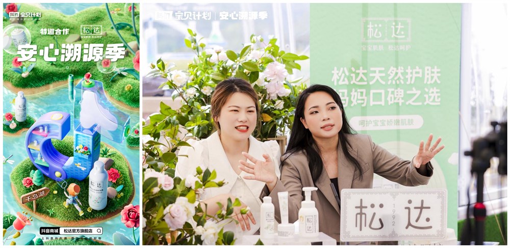 而來(lái)自千島湖的松達(dá),則走進(jìn)了抖音達(dá)人@主持人王芳、@潮萌吳爸,以及@找王太啊的直播間,在達(dá)人深度解鎖場(chǎng)景化的「溯源」直播過(guò)程里,通過(guò)短視頻、直播與線下實(shí)驗(yàn)展示等方式,展現(xiàn)出品牌遵循“妝食同源”的成分標(biāo)準(zhǔn),讓品牌讓產(chǎn)品有跡可循,品質(zhì)安全有保證。