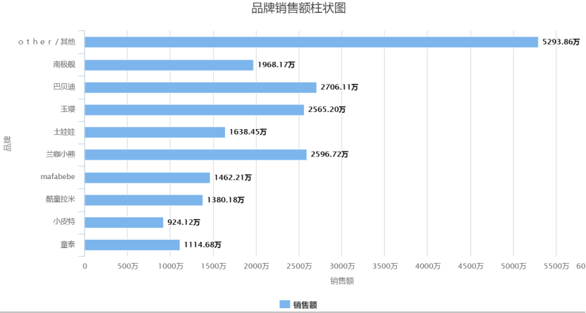 截止2019年9月,線上市場規(guī)模也是過億元的。按銷售額排名,前九名分別為:巴貝迪、藍(lán)咖小熊、玉瓔、南極艦、土娃娃、mafabebe、酷童拉米、童泰、小皮特??傮w來看,前后各品牌銷售額相差不大,所以嬰兒禮盒中還未出現(xiàn)絕對(duì)的龍頭品牌。