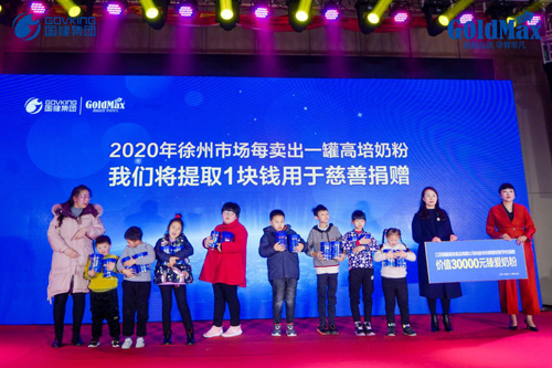 確實,江蘇國健今天取得的成功碩果離不開在場全體合作伙伴的支持與努力,但也同樣離不開消費者對高培的認可與信賴。江蘇國健深知取之于社會,用之于社會的責任感,在感謝會現(xiàn)場向徐州市牌樓培智學校捐贈了價值3萬元的高培臻愛奶粉,江蘇國健總經(jīng)理沈紅霞女士表示,2020年徐州市場每賣出一罐高培奶粉將會捐贈一元錢用于慈善捐贈,讓更多困境中的人感受到慈善的溫暖。