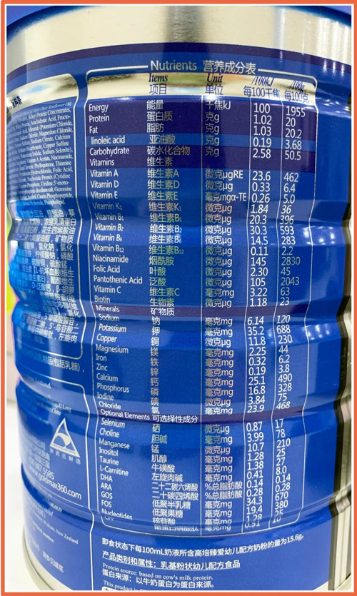 從高培臻愛奶粉的營(yíng)養(yǎng)成分表中可以看到,它的碳水化合物、脂肪、維生素、礦物質(zhì)均符合我國(guó)國(guó)標(biāo),我們?cè)诖司筒欢嗾f(shuō),我們具體談?wù)劥蠹冶容^關(guān)心的可選擇成分。 可選擇成分包括常規(guī)強(qiáng)化配方和特色強(qiáng)化配方。高培臻愛3段包括:硒、膽堿、錳、肌醇、?;撬?、左旋肉堿、DHA、ARA/AA、低聚半乳糖、低聚果糖、核苷酸和CPP等12種營(yíng)養(yǎng)素。