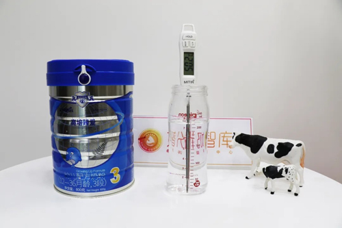 對(duì)于高培臻愛奶粉,按照奶粉沖調(diào)說(shuō)明(罐體建議水溫50℃左右),我們采用專屬的“仿真沖調(diào)標(biāo)準(zhǔn)”進(jìn)行評(píng)測(cè),先取210ml冷卻至50.2℃的開水后再取7平勺高培臻愛奶粉。