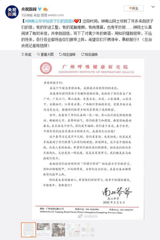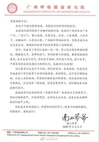 鐘南山給孩子們回信:知識縫制鎧甲 將來披甲上陣