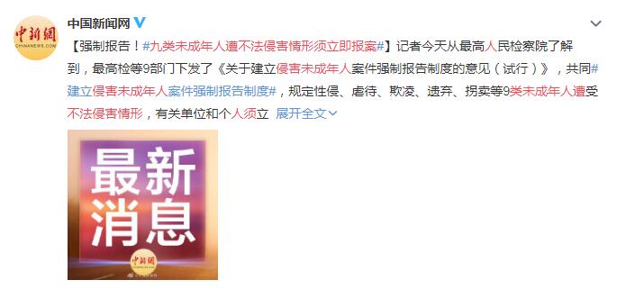 親貝網(wǎng)小編從最高人民檢察院了解到,最高檢等9部門共同建立侵害未成年人案件強(qiáng)制報(bào)告制度,規(guī)定9類未成年人遭受不法侵害情形,有關(guān)單位和個(gè)人須立即報(bào)案。