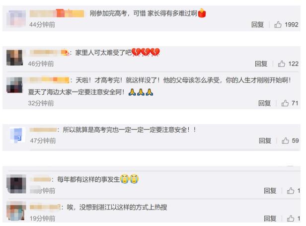 7月9日,8名學(xué)生到廣東湛江海邊游玩。其中一人被海浪卷走后失蹤。接到報(bào)告后立即展開(kāi)救援。警方表示,在其他學(xué)生發(fā)出求救信號(hào)后,游客紛紛跳入水中施救,但未能找到。7月10日,失蹤學(xué)生的尸體被發(fā)現(xiàn)。據(jù)了解,學(xué)生剛參加完高考。