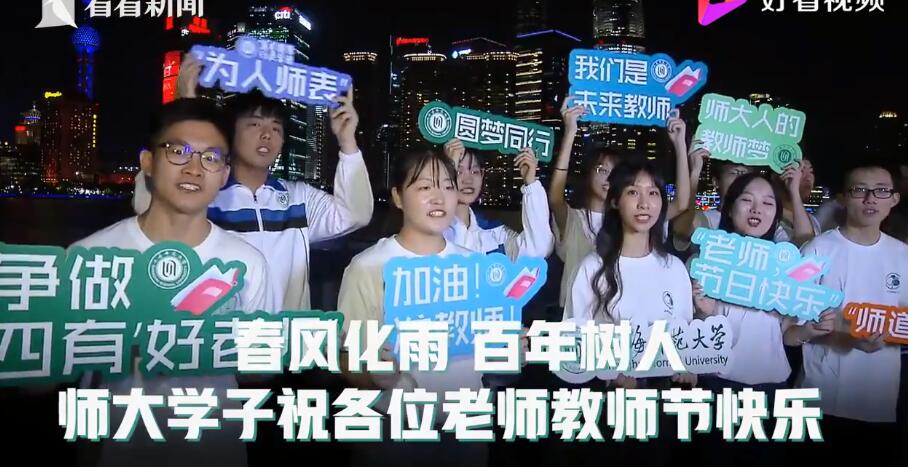同時(shí),來自上海交通大學(xué)、同濟(jì)大學(xué)、上海中醫(yī)藥大學(xué)、上海師范大學(xué)、上海第二工業(yè)大學(xué)、復(fù)旦大學(xué)上海醫(yī)學(xué)院等高校的30余名師生齊聲喊出對老師的祝福,以獻(xiàn)唱改編歌曲、拍攝創(chuàng)意照片等方式感念師恩、禮敬教師。