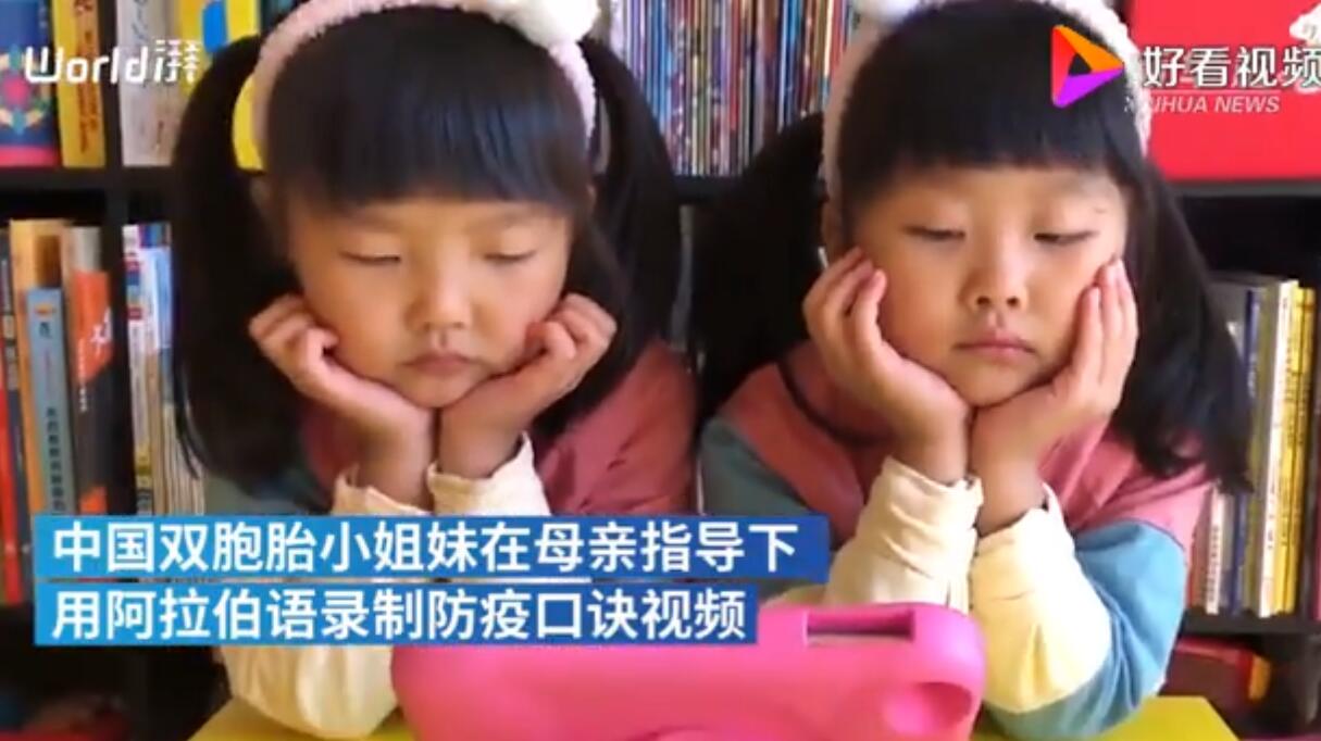 來(lái)自中國(guó)的雙胞胎姐妹萌萌和芽芽用阿拉伯語(yǔ)錄制視頻,告訴網(wǎng)友面對(duì)疫情應(yīng)做好哪些防疫措施。雙胞胎姐妹稚嫩的童音,可愛(ài)的模樣,受到阿拉伯國(guó)家網(wǎng)友廣泛關(guān)注。
