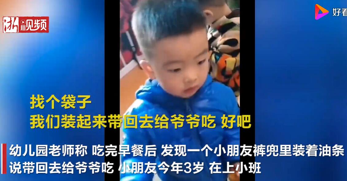 孩子上學了誰帶出來的娃就看娃娃平時惦記誰了,這不親貝網小編今日了解到河南駐馬店某幼兒園一小朋友,悄悄把油條裝進褲兜說要帶回去給爺爺吃,老師將視頻發(fā)到網上引起網友的紛紛關注點贊,小小年紀可愛又孝順,爺爺沒白疼孫子。