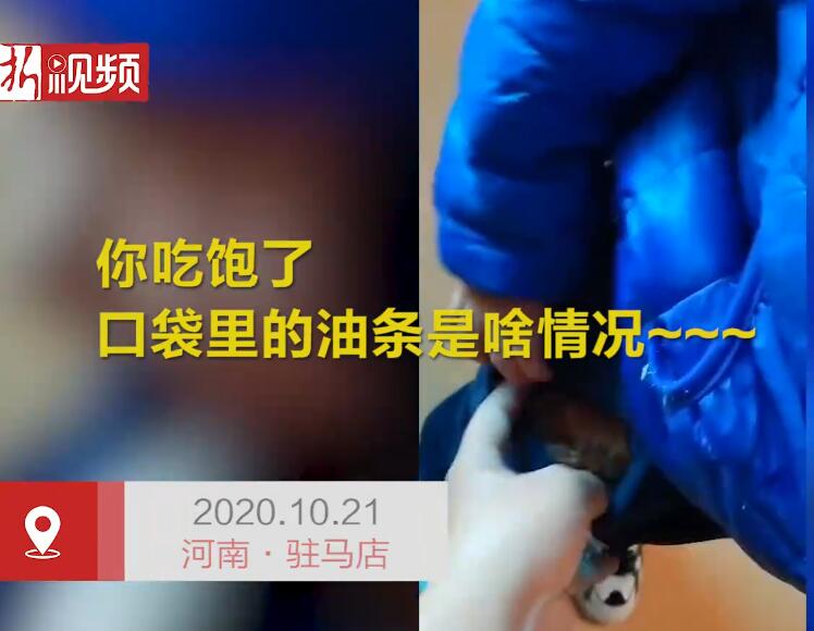 10月21日,河南駐馬店,某幼兒園一小朋友悄悄把油條裝進褲兜的視頻走紅網絡。幼兒園老師稱,早上吃完早餐后,發(fā)現(xiàn)一個小朋友褲兜里裝著油條,說帶回去給爺爺吃,小朋友今年三歲,在上小班。