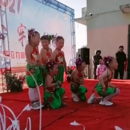 而從網(wǎng)上流出的照片我們可以看到,很多小朋友只是穿著單薄的衣服在臺(tái)上跳舞,身上僅僅穿著一塊肚兜和短褲,女童們都是雙手緊抱,雖然臉上露著笑容,但是身體還是暴露了她們的寒冷。