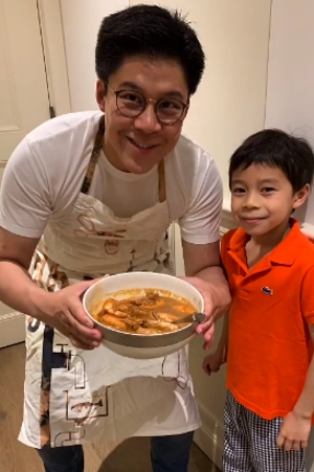霍啟剛與兒子共同下廚,疫情期間的又一項(xiàng)親子活動