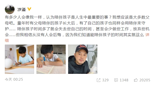 沙溢深夜發(fā)長(zhǎng)文談孩子教育 少些工作也要多陪伴